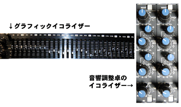 等しくするという意。周波数特性を変化させて、音色を補正する回路。(EQ・イーキュウーと略) |
