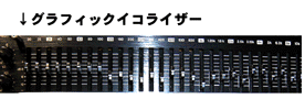 | グラフィックイコライザー | graphic equalizer | 音質調整器の一種で、可聴周波数帯域をいくつかに分割し、各帯域ごとに独立してレベルを調整できるものをいう。GEQと略記号で表示する。通常、スライド形のボリュームを使い、調整後のツマミの並び方で補正カーブが一目でわかるようにしてある。アクティブ型(→アクティブイコライザー)とパッシブ型(→パッシブイコライザー)がある。 |