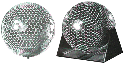 | ミラーボール | 小さい鏡を一面に張りつけた球でモーターで回転し、これにスポットライトを当てると場内全体に光点を撒き散らす。レヴューなどに好んで使われる。クリスタルとも呼ばれる。 |