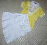 黄色のシャツ+ニットが一体化しているデザイン。