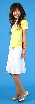 シャツはCancam6月号掲載商品。それに合うボトムをと、白のパンツを選択。もうちょっと短いのとも考えたけど露出控えめってことで、長い方を選びました。中に着るものはオレンジ・青・黄で考えていて青・オレンジでいいものがなく、黄色のキャミを選びました。 |