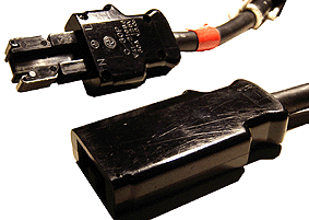 照明用コネクターのひとつ。A型(→A型コネクター)の改良型で安全性を高めた設計。コンセントの両極の間に突起があり、接合時に極性が固定される。C型のプラグはA型コンセントに差し込めるが、この逆はできない。現在、現場ではほとんどこのC型が使われている。定格はA型と同じく大型は60A、小型は30Aの2種類。 |