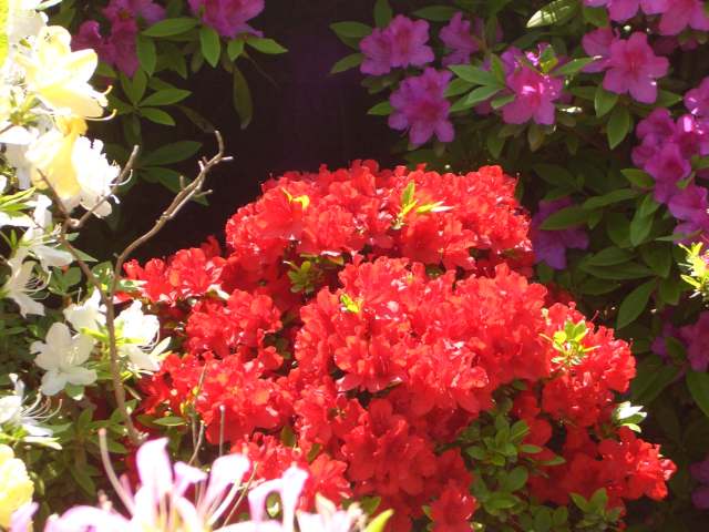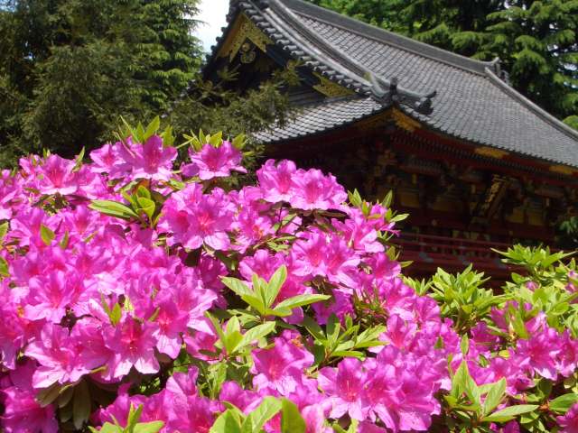 | 2006年5月4日 つつじ祭りとぼたん祭りと東照宮にいってきた 今年もつつじ祭りに行ってきました。 つつじを見る所の入り口には、つつじの咲き具合がメーターでアナウンスされています。 根津神社のホームページには、「遅咲きの品種が丁度見ごろです」とのことでした。 なので、今年は満開のつつじ、というわけにはいかなそうです。 でもって、恒例のつつじメーターの今年の具合は・・・ ![]() 全然あってません とりあえず、遅咲きのミシマツツジが全開なので、 誰か触ってずれてしまったのかもしれませんね。 ![]() 遅咲きのミシマツツジです。 ![]() これは黒つつじでしょうか? ![]() 黄色いのも珍しいですね。キレンゲツツジです。 ![]() フジツツジです。 ![]() これはキリンというそうです。きれいですね。 ここで、根津神社内の張り紙で、近くの東照宮でぼたん祭りをやっているとのこと。 早速行ってみました。 てくてく てくてくてくてく てくてくてくてくてく 迷いました。 おかちんは知らない道を行くと必ず迷うのですが、案の定です。 まっすぐ行けばいいのに、 清水坂を上がったのがいけなかったようです。 なぜか目の前に護国院本堂とかあります。 ![]() まぁ、行ったことなかったので、結果オーライということにして。 上野公園をぐるりと回り込み、なんとか東照宮に着きました。 ![]() やけに入館料が高いのが気になりますが、おかげで人が少なくゆっくりと観ることができました。 ![]() こんなのや ![]() こんなのや、 ![]() かわいいかわいい ![]() 何かハート型です。 ![]() 割と今日お気に入りのショット。既に花の名前が分かってません。 せっかく来たので金色殿を観ることにしました。 ![]() 国宝ですよ、国宝。 ![]() 大分朽ち果ててます。実は来年から10年かけて 修復作業をするとのことです(入り口にいたおじさん談)。 なので、観るなら今年中に是非どうぞ〜 |