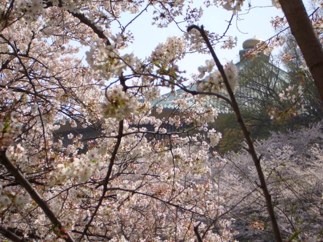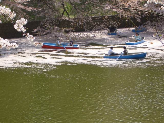 | 2005年4月10日 千鳥ヶ淵にいってきた 今日が今年の桜の一番見所とかいうことをテレビでやってましたので、 昼前からのそのそと起きて、桜で有名らしい千鳥ヶ淵へ行くことにしました。 行ったことないんですが、確か九段下で降りたらよかったはず。 というわけで到着。 出口を出たらいきなり良い眺め。 ![]() よくこの構図は千鳥ヶ淵の写真に出てきます。多分これが千鳥ヶ淵に違いありません。 きれいきれい。 ![]() 桜の向こうには爆風スランプの某歌で出てきた大きな玉ねぎが(古い) 千鳥ヶ淵で大きな玉ねぎ。歌どおりですね。 いきなりゴールに着いたということでいささか拍子抜けした後、どうせなのでブラブラ歩くことに。 すると、案内の地図を発見。 ![]() 地図の赤い丸あたりが地下鉄の出口だったのですが、実は千鳥ヶ淵と思っていたのは (写ってませんが)牛ヶ淵というところでした。 しょうがないので、千鳥ヶ淵方面へ。 確かボートに乗れるらしいんで探してみます。 ![]() お、ボート発見。 ちなみに水面が白いのは泡ではなく、花びらです。 いぃなぁ。ちくしょー。 というわけで、ついカッとなって ![]() 飲んでみました。 今日の一番お気に入りの写真ですー ![]() 今日は落ちナシ ○| ̄|_ |