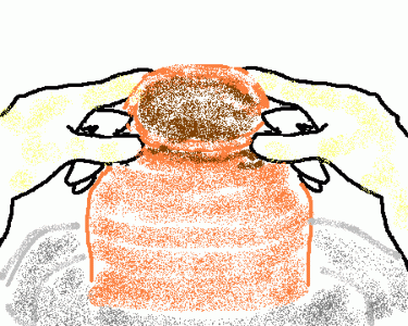 湯のみの形をつくって、上の方をすぼめます。