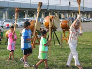 点火式は可愛い和太鼓軍団の音に合わせて