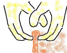 親指を中心に入れて穴を開けていきます。あんまり指を突っ込むと底が抜けるので底の厚さを意識して、そのまま横に拡げます。 |