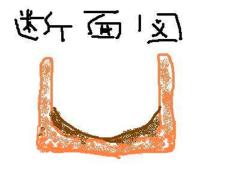 こんな形になればいいです。左の図の色が濃い部分は底に土が余った状態です。ろくろを引いた後こうなっていたら注意。 |