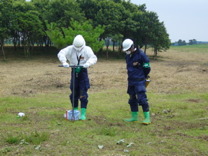 がもたれている演習場内で、土壌が毒ガスに汚染されているかどうか調査する