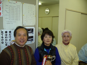 優勝は、同じ組で廻った初出場の藤原さん(写真中央)、写真右隣りの斉藤さんも同じ組で5位に入賞した。