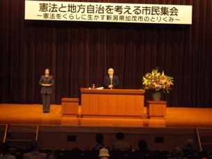 千葉県弁護士会主催の「憲法と地方自治」市民集会が千葉市で開かれ、新潟県加茂市長の小池清彦氏が講演を行なった。