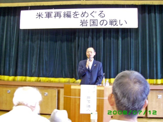 井原勝介前岩国市長の講演は「米軍再編をめぐる岩国の戦い」と題して行なわれた。