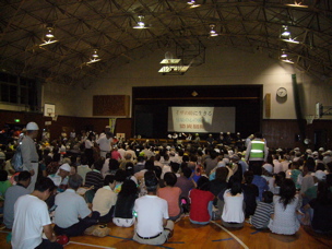 夜は、古和釜小学校で行なわれた松が丘地区の防災訓練に参加した。会場の古和釜小学校体育館には500名ほどの住民が集まった。