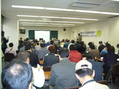 市内各地で住環境を破壊する高層マンション建設に反対する建築紛争が多発する中、市は、2007年3月に「絶対高さ制限」制度導入の方針を決め、年度内に都市計画決定すると市民に約束しながら、その決定が遅れ、その間にも駆け込み的なマンション建設が進み、マンション建築と紛争に歯止めがかからない現状に、危機感を持った市民が法律や建築の専門家を招いてシンポジウムを開いたもの。