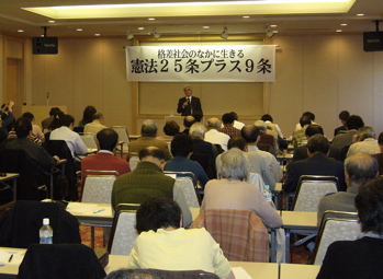 「格差社会の中に生きる、憲法 9条プラス25条」ー 大不況のなかで憲法の力を生かすーというテーマで、9条の会千葉地方議員ネット 主催の講演会が、今日の午後、千葉市で開かれ地方議員や市民120名が参加した。