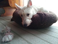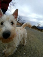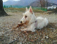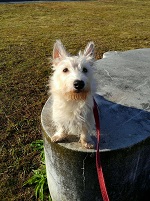 スコッチにしてはちょっと長いシッポを振って応えます。