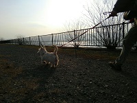 まずは途中の河川敷でお散歩。