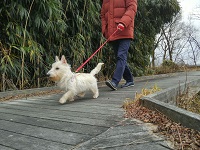 風が強くて寒かったけど、頑張って歩いた飼い主。