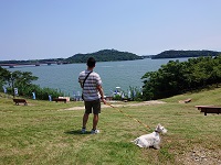 朝の散歩はミンチョリンの担当。