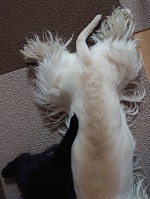 ウタは元気一杯ですが、下痢の後遺症で腸がまだ硬い感じがするらしく、