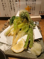 『春野菜の天麩羅』・・・手前「ぜんまい」ではなく「こごみ」