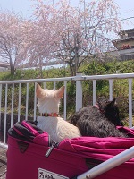 人通りの少ない時間を見計らって、犬2匹バギーに乗せて、