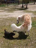ヒヨが小さかった時も優しく遊んでくれたボルゾイ君。