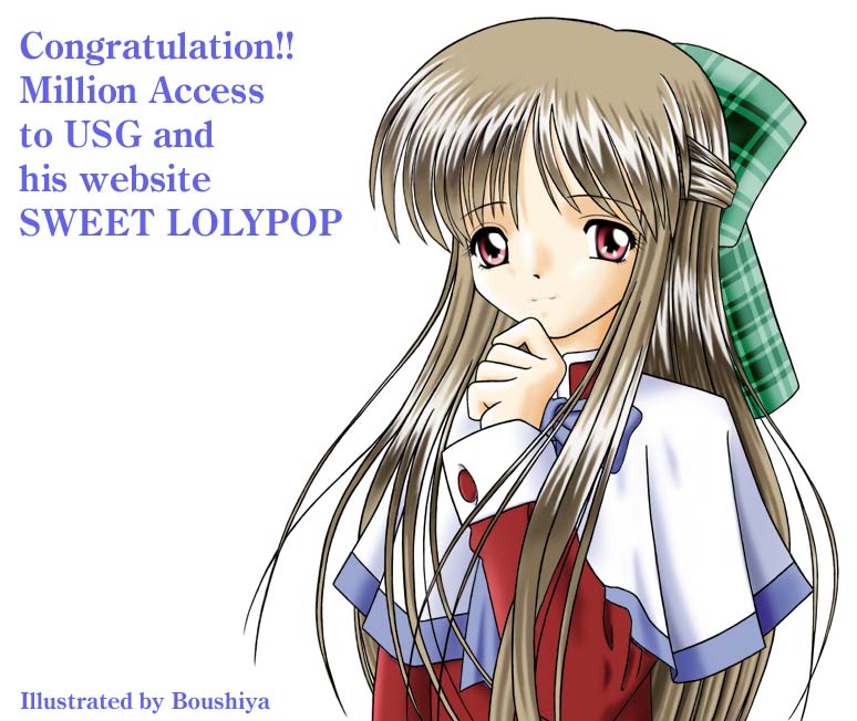 Lolypopの100万アクセスのお祝いCGです。 贈りモノというコトで、USGサンの好みに合って、且つ私が描けるキャラというコトでKanonの佐祐里サンになりました。Kanonはオリジナルが発売されてから既に1年以上が経過し、ネタとしては古いですが最近のキャラでは条件を満たせなかったので(^ ^; まぁ、Dreamcast版が今年の9月に出たので、それを考えればまだまだ現役のネタというコトで。 |