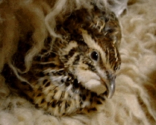 女の子はほとんど鳴きません。 ごくたまに大きな声をあげる事もありますが、 普段はヒヨヒヨヒヨという程度です。 2〜3ヶ月で成鳥になると、 スーパーでお馴染みのウズラ卵を 産むようになります。 (産卵時期に個体差はあります) あごから首にかけては 白っぽく、胸の部分には 白地に焦げ茶の斑点があります。 |