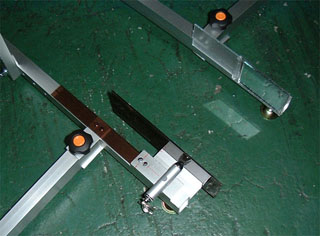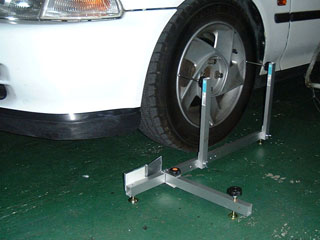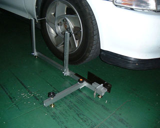 ホイルに当てる部分は、ロングボルトを使用。角パイプに長穴をあけ、上下に可変可能。